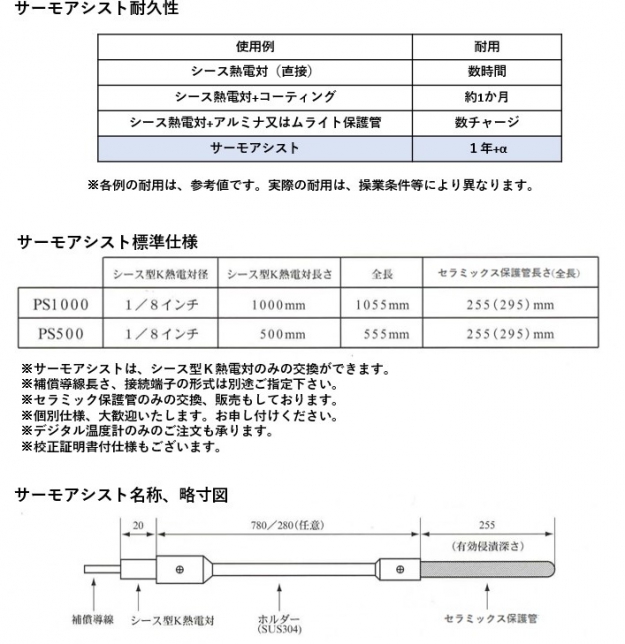セラミックス保護管付き熱電対 サーモアシスト