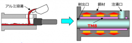 軽量で高耐融性・低熱伝導性を持つチタンに高強度なセラミックスの粒子を均一に分散させることにより、耐融性と耐摩耗性を実現させた、金属基複合材料「チタンメタックス」。これを使用し製造されたTCスリーブは、アルミ合金ダイカストの射出スリーブに適用され、特に低速ダイカストにおいて威力を発揮します。